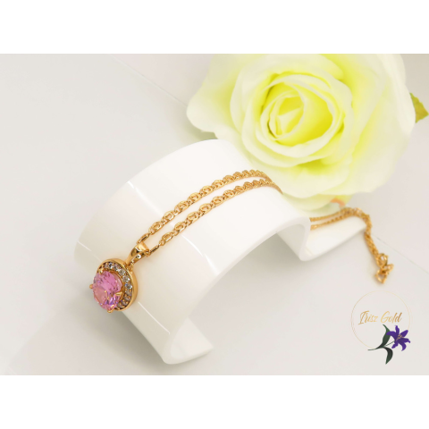 1 kép Borikna antiallergén nagy rózsaszín köves nyaklánc-18K