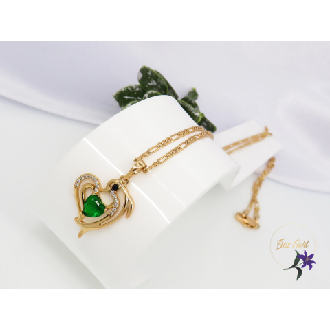 1 kép Borinka Gold Filled delfin medálos nyaklánc zöld kövel-18k