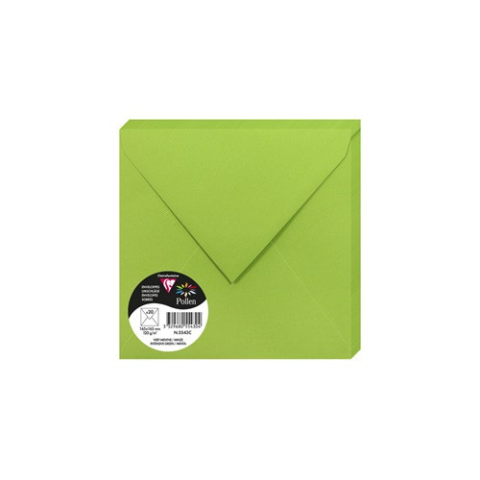 Boríték Clairefontaine Pollen 16,5x16,5 cm enyvezett intenzív zöld Méret: 16,5x16.5 cmSzín: intenzív zöldkiváló minőségű szilikonos borítékok, a népszerű Trophée színes papírokkal megegyező színekben nyomtatható lézer- és tinta sugaras nyomtatóval PEFC
