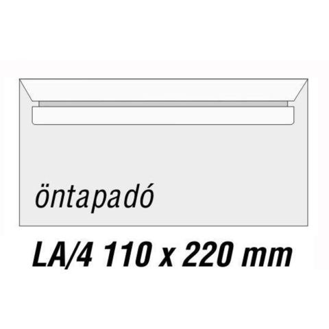 1 kép Boríték LA4 110x220mm szilikonos bélésnyomott bal ablakos 45x90 mm Boríték