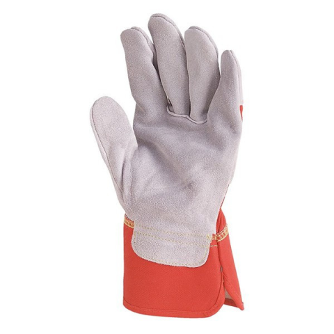 Bőrkesztyű COVERGUARD vászon piros 11-es 2 darab/pár 1,2 mm vastagságú, kiváló, szürke marhahasíték erős igénybevételre tartós, piros vászon kézhát és mandzsetta artéria-, köröm- és ökölcsontvédő EN388: 2016 4143x Előnyök erős mechanikai védelem artér
