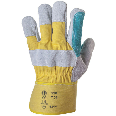 BŐRKESZTYŰ, DUPLA HASÍTÉKBŐR TENYÉR/SÁRGA VÁSZON_11(csgt * vastag, szürke, kiváló minőségű marhahasíték* dupla vastag megerősítés a tenyéren, valamint a mutató- és hüvelykujjon* bőrkesztyűkre vonatkozó lehető legmagasabb védelmi képesség* artéria-, kör