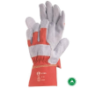 BŐRKESZTYŰ, SZÜRKE MARHAHASÍTÉK/PIROS VÁSZON KÉZHÁT_11 Szürke marhahasíték rakodókesztyű Pamut tenyérbélés, piros textil hát és mandzsetta 8 cm-es biztonsági mandzsetta