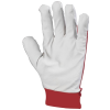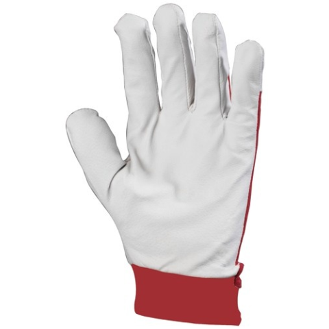 BŐRKESZTYŰ, SZÜRKE SZÍNSERTÉS/PIROS VÁSZON, TÉPŐZÁR_10 * puha színsertésbőr sofőrkesztyű * körömvédő * tartós, puha, rugalmas piros textil kézhát * piros csíkos, tépőzárral állítható rugalmas csuklórész * finom munkákra is használható