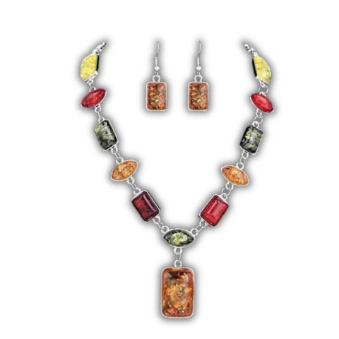 Válaszd ezt az elegáns borostyán ékszer szettet, amely nyakláncot és fülbevalót tartalmaz. Egyedi kialakítás és természetes borostyánkő hatása