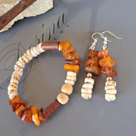 Borostyán és gyöngyház szett ékszer szett 1 kép