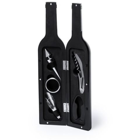 Borosüveg formájú,3 részes boros szett. A szett tartalma:bornyitó, cseppőr és kiöntő. Méret:ø64×240 mm Emblémázási adatok: Max. méret:55mm x 80mm Rendelésre: 3-10 nap!