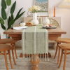 1 kép Borsózöld hímzett vászon asztalfutó kézzel készített bojtokkal