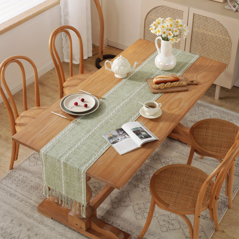 Fedezd fel a borsózöld hímzett vászon asztalfutó varázsát, amely kézzel készített bojtokkal díszíti otthonodat. Ez a kifinomult és egyedi asztalfutó tökéletes választás, hogy stílust és eleganciát vigyél az étkeződbe vagy bármely más helyiségbe. A részlet