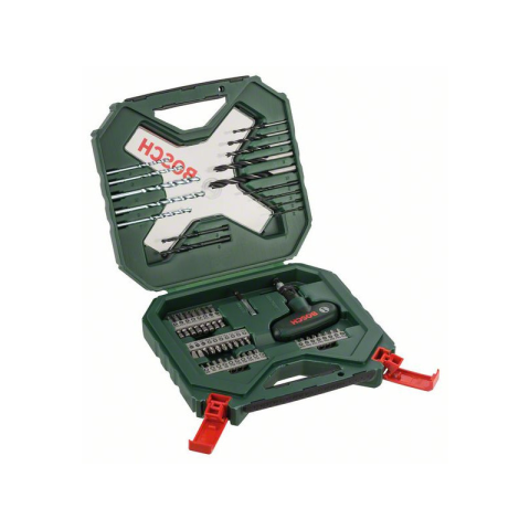 BOSCH Racsnis bithegy és fúrószár készlet 54 részes X-Line Barkácsolás Bosch minőséggel: Fúrás és csavarozás könnyedén. Kiválóan felkészítve a sokoldalú feladatokra 6 fémfúróval és 5-5 kőzet-, illetve fafúróval. 36 csavarozóbit 25 és 50 mm hosszban 5