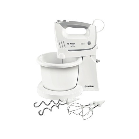 Bosch TÁLAS MIXER MFQ36460 Tulajdonságok:450 Watt 5 sebességi fokozatPillanatkapcsoló / Turbó fokozat Új motor technológia: erős, ugyanakkor könnyű és rendkívül csendes Kíváló kezelhetőség a kényelmes, kézreálló formának és a nagy gomboknak köszönhetőe