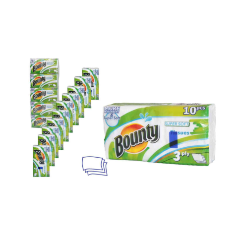 A Bounty Papír Zsebkendő 10*10 Darabos mindennapi szükséglet minden háztartásban. Puha és erős anyagból készült, így ideális a mindennapi használatra, legyen szó akár orrfújásról, étkezésről vagy tisztításról. A praktikus csomagolás és a kényelmes méret g