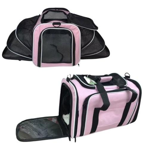 1 kép Bővíthető és összecsukható kisállat utazó táska - Rózsaszín
