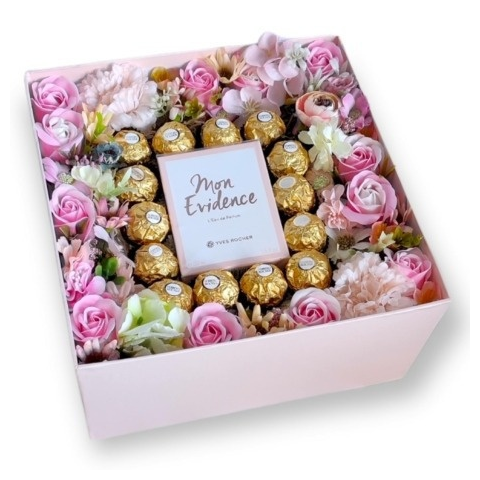 1 kép Boxenjoy - kocka desszert doboz - szappanrózsa, Ferrero rocher