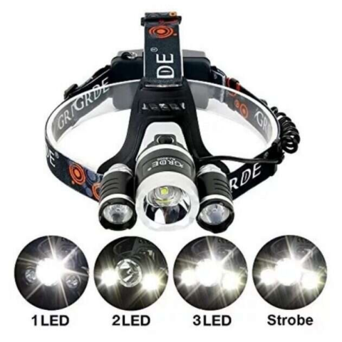 BR2 Fejlámpa 3 lámpás, akkumulátorral, töltővel fejlámpa 1 kép