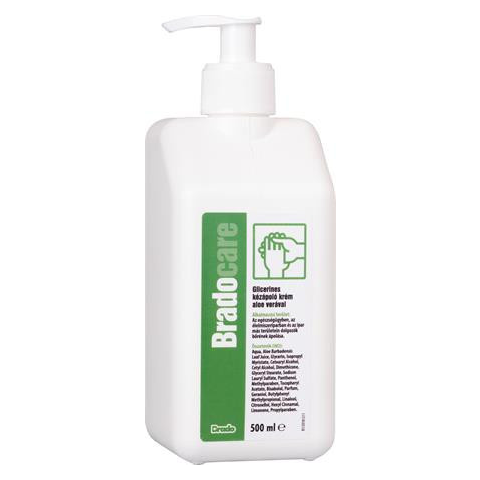 1 kép BRADO Kézápoló krém, munkavédelmi, glicerines, pumpás, 500 ml, BRADOCARE, aloe vera