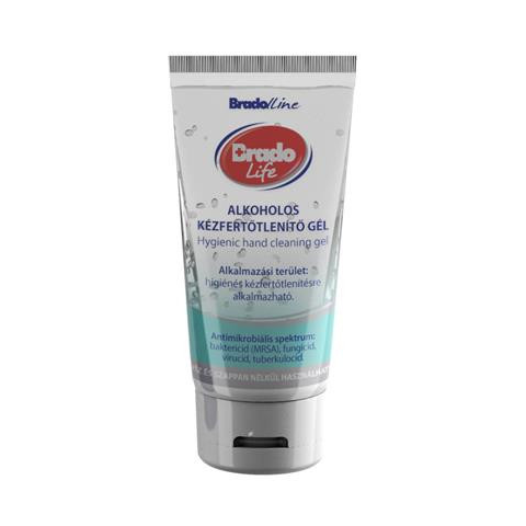 Kézfertőtlenítő gél, tubusos, 100 ml, BRADOLIFE -kéz- és bőrfertőtlenítőszer -alkalmazási terület: Bőrfertőtlenítésre, higiénés kézfertőtlenítésre alkalmazható -antimikrobiális spektrum: baktericid (MRSA), tuberkulocid, fungicid, virucid (HBV, HIV in