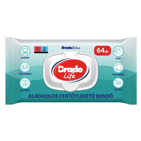 Bradolife alkoholos fertőtlenítő kendő 64db - visszazárható tisztító- és takarítószer, higiénia termékleírás