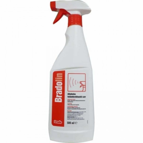 Bradolin alkoholos felületfertőtlenítő szer 500ml - szórófejes Bradolin 500 ml-es alkoholos, praktikus fertőtlenítő szer. Egészségügyben is használható gyors felülettiszító, mely baktériumölő hatással bír. Gyors és hatékony felületkezlésre kitűnő. A term