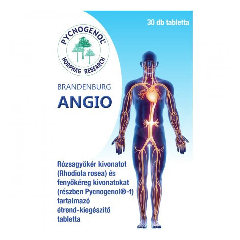 Brandenburg Angio - Testnek, léleknek jó! Rózsagyökéret (Rhodiola rosea) és tengeri fenyőkéreget (Pycnogenol) tartalmazó étrend-kiegészítő. Összetétel: rózsagyökér gyökér kivonat (Rhodiola rosea), mikrokristályos cellulóz, fenyőkéreg kivonat (Pinus pi