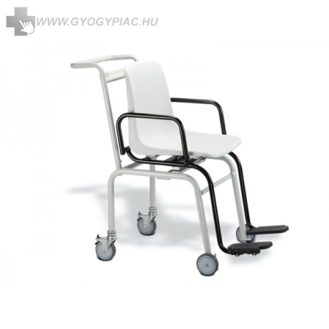 • Rendkívül stabil, lekerekített fémcsovázas • A kényelmes ülés biztonságosan tartja a beteget, a kartámaszok hátrahajthatóak, állítható lábtámaszok segítik a beülést • A hátsó kerekek fékezhetok • Nagy méretu LCD-kijelzo • Elemmel használható mobil ülomé