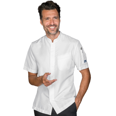 Termék részletei: A Bradford Slim fehér színű, uniszex szakácskabát. Kiváló választás férfiak és nők számára, akik séfként dolgoznak konyhában, étteremben vagy catering szolgáltatásnál. Kínai gallérral és középső gombos rögzítéssel. Háton mikrohálós rés
