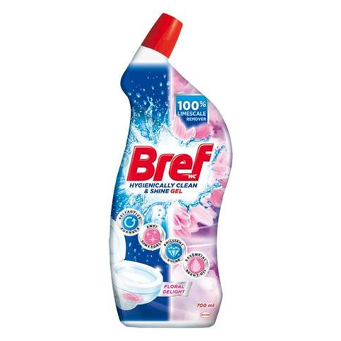 WC-tisztítógél, 700 ml, BREF, virág Termékjellemzők: - megakadályozza a baktériumok elszaporodását - higiénikus tisztaságot biztosít - gazdaságos - egyszerűen és higiénikusan újratölthető - 100%-ig önműködő WC tisztító gél eltávolítja a vízkövet a vízs