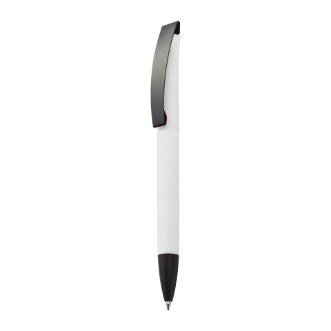 Kéken író műanyag golyóstoll, gumírozott tolttesttel, fekete fém klipsszel mely ideális gravírozásra