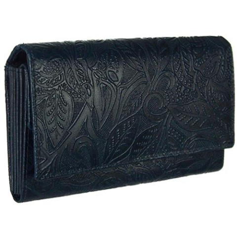 Elején levél mintásra nyomott fedeles sötétkék női bőr pénztárca