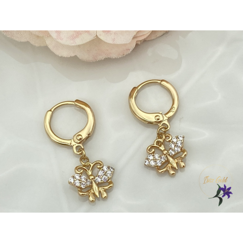 Gyönyörű pillangó fülbevaló fehér cirkónia kövekkelSzin: 18KrMéret:24x10 mmZár: karika méret: 11mm