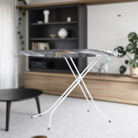 Euro II 120 x 38 cm-es vasalódeszka fiókkal és masszív fémlappal rendelkezik, amely jól átengedi a gőzt, miközben szárazon tartja a ruhákat. A párna vastagsága a deszkán 8 mm, rendelkezik elektromos aljzattal.