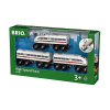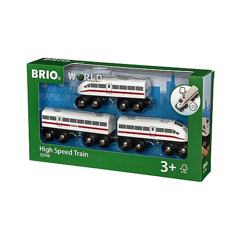BRIO Gyorsvonat Klasszikus gyorsvonat! A BRIO Gyorsvonat egy modern dizájnnal készült fehér, három részes gyorsvonat piros csíkkal az oldalán és mozdonykürt hanggal A BRIO Gyorsvonat mágnesesen csatlakoztatható egymáshoz, a gyorsvonat tetején lévő gom