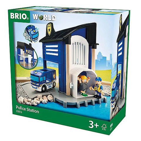 BRIO Rendőrállomás Riasztás érkezik a rendőrállomásra! A BRIO Rendőrállomás egy kétszintes rendőrállomás, az alsó részen garázs a rendőrautónak, a felső szinten börtöncella A BRIO Rendőrállomás rendőrautójába ültesd be a rendőr figurát, nyomd meg az a