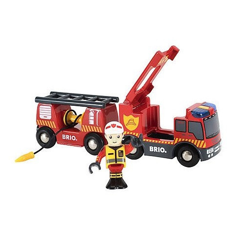 BRIO Sürgősségi tűzoltóautó Olts tüzet a tűzoltóautóval! A BRIO Sürgősségi tűzoltóautó egy piros színű nyitható tetejű tűzoltóautó, létrás, locsolótömlős utánfutóval, figurával A BRIO Sürgősségi tűzoltóautóba ültesd be a figurát, nyomd meg a tűzoltóau