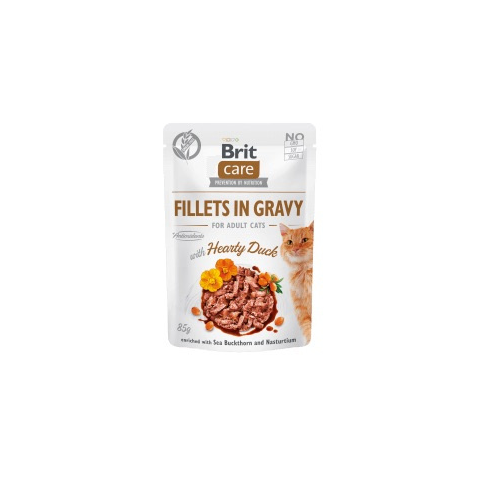 Brit Care Cat Fillets in Gravy with Hearty Duck – 4×85 g macskaeledel termékleírás