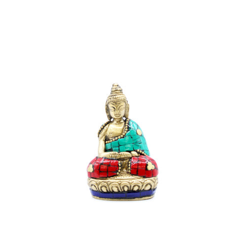Kézi készítésű Buddha Szobor - Felemelt Kezek - 7.5cm, egyenesen régi Delhi szívéből, Indiából.A szobor méretéhez képest eléggé nehéz. Gyönyörű részletekkel, kék, vörös és türkiz díszítéssel készült. Jól mutat különböző környezetekben, legyen szó minimali