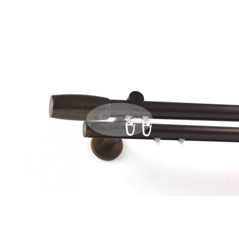 A Cubus végzárós bronz színű 2 rudas, belső sínes 25 mm átmérőjű fém karnis szett tartalma: 2 db bronz színű belső sínes fém karnisrúd a kiválasztott hosszúságban 2 db Cubus bronz színű fém karnis végzáró (kb. 8 cm hosszú) 2 db kupak formájú, bronz színű