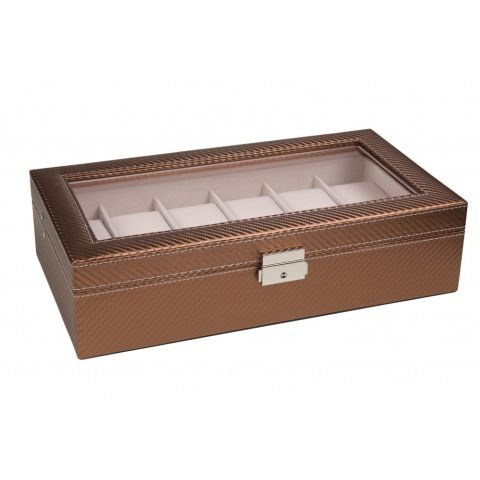 1 kép BRONZBARNA SZÍNŰ KARBON MINTÁS BŐR ÓRATARTÓ DOBOZ 12 ÓRÁNAK