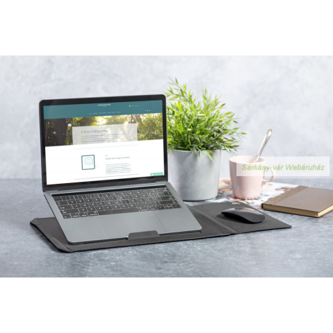 600D RPET poliészterből készült multifunkciós laptop tartó mágneses zárral, kihajtható egérpaddal és laptop állvánnyal. Méret: 390×285×9 mm Megkülönböztető RPET logóval. Szín: fekete Anyag:600D újrahasznosított PET poliészter Termék tömege: 500 g Rende