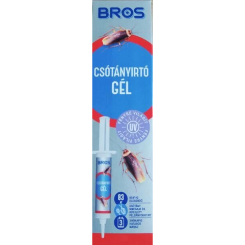 A BROS csótányirtó gél egy innovatív, használatra kész rovarirtó csalétek gél, amely a csótányok főbb fajtáit mindkét nemnél, minden fejlődési stádiumban elpusztítja. A gél egy olyan rendkívül vonzó és tápláló anyagokkal készült, mely a csótányok számára