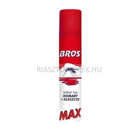 Bros MAX speciális szúnyog és kullancsriasztó aerosol 90ml A Bros MAX permet hatékonyan távoltartja a szúnyogokat max. 8órán keresztül, és a kullancsokat max. 5órán keresztül. A termék használható kifejezetten a TRÓPUSI szúnyogok ellen is utazásnál! A B
