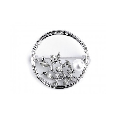 ,Gö,mbö,lyű bross gyö,ngyö,kkel é,s csiszolt kö,vekkel. A belső minta virá,gra emlé,keztet. Jó,l mutat tá,ská,n, kalapokon. Lakodalmakra alkalmas.A há,tsó, oldalá,n kapocs tű talá,lható,. , ,ö,sszeté,telé,kszer fé,m galvanizá,lá,salü,veg