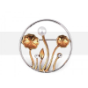 ,Gö,mbö,lyű bross gyö,ngyö,kkel é,s csiszolt kö,vekkel. A belső minta virá,gra emlé,keztet. Jó,l mutat tá,ská,n, kalapokon. Lakodalmakra alkalmas.A há,tsó, oldalá,n kapocs tű talá,lható,. , ,ö,sszeté,telé,kszer fé,m galvanizá,lá,salü,veg