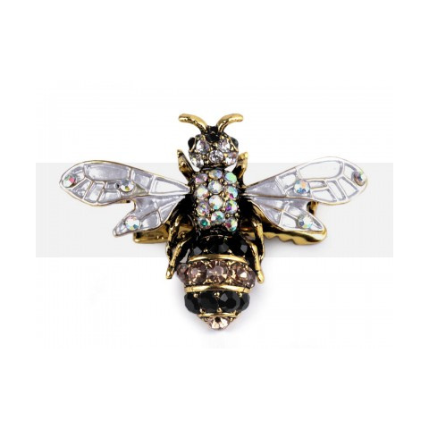Elegá,ns bross mé,hecske. Az egé,sz brosscsiszolt gyö,ngyö,kkel van ö,sszerakva. A gyö,ngyö,k a kö,zepé,n AB fé,nyesek. A há,tsó, oldalá,n kapocs tű talá,lható,. Ruhá,kra alkalmas. Műanyag ká,rtyá,n talá,lható,, amelyet fel lehet akasztani. Szé,lessé,ge: 4,7 cm Magassá,g: 3,2 cm A gombostű hossza: 3 cm A klipsz hossza: 2,7 cmö,sszeté,telé,kszer f&