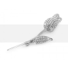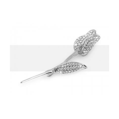 Tulipá,n alakú, csillá,mos bross. Csiszolt kö,vekkel van dí,szí,tve. A há,tsó, oldalá,n bross tű van. Ruhá,kon, kalapokon hordható,. Szé,lessé,ge: 1,8 cm Hossz: 6 cmö,sszeté,telé,kszer fé,m galvanizá,lá,salü,veg