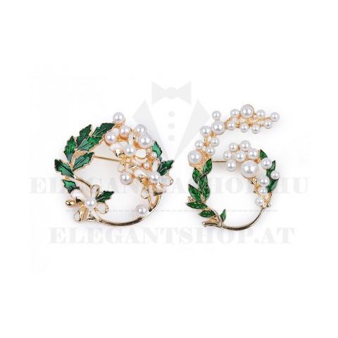 Egy elegá,ns nö,vé,nyi motí,vumú,, zomá,ncozott bross ,tö,ké,letes kiegé,szí,tője lesz az ö,ltö,zé,ké,nek. ,A gyö,ngyö,knek ,kö,szö,nhetően tö,ké,letesen dí,szí,tik a blú,zokat, ruhá,kat, kabá,tokat, puló,vereket, kabá,tokat, ké,zitá,ská,kat vagy kalapokat. Sá,l dekoratí,v rö,gzí,té,sé,re