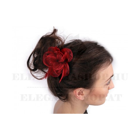 Mutató,s virá,gos dí,szkalap ,ü,nnepi alkalomra.A virá,g ,ló,szőr há,ló,bó,l ké,szü,lt, szellős, egyben dú,s hatá,sú,. Az anyagá,nak kö,szö,nhetően nagyon elegá,ns, jutá,ra emlé,keztet. A dí,szkalap hajpá,ntra van erősí,tve, mely szaté,nnal van bevonva. Á,tmé,rő: ,10 cm A klipsz hossza: ,4,5 cm A gombostű hossza: ,2 cmö,