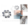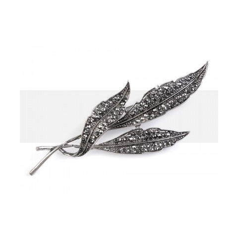 Levé,l alakú, fé,nyes fé,m bross . A csiszolt kö,vekszé,pen fé,nylenek, lakodalmakra. Kendőre alkalmas.A há,tsó, oldalá,n kapocs van biztosí,té,kkal. , Szé,lessé,ge: 3,5 cm Hossz: 9,5 cm A gombostű hossza: 3 cmö,sszeté,telé,kszer fé,m galvanizá,lá,salü,veg