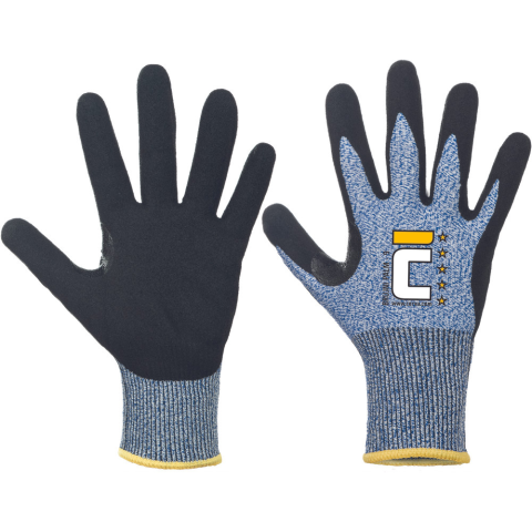 BRUJNI Palm kesztyű nitril CUT B 8 • tenyéren és az ujjakon homokfújt nitrilbe mártott, varrat nélküli, kötött kesztyű B szintű vágásvédelemmel • a hüvelyk- és a mutatóujjak között megerősített • alkalmas éles és olajos termékek kezeléséhez, üvegkezelé