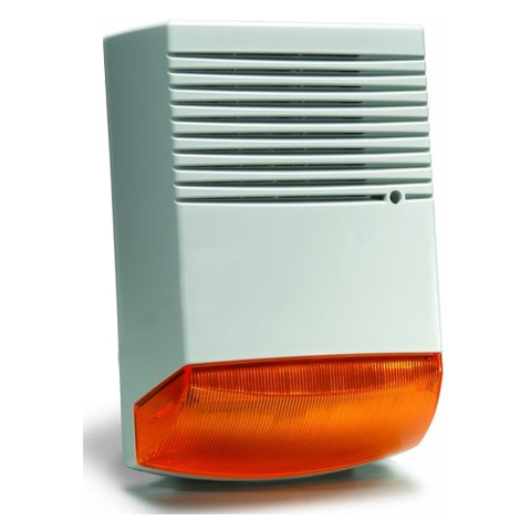 Kültéri hang-fényjelző szabotázsvédett fémházban, akku nélkül A hang- és fényjelző főbb jellemzői 1850 Hz (1300 ~ 2400 Hz) Villogó: 12 VDC / 6 W 13.8 ~ 14.2 VDC Áramfelvétel: 8 mA, riasztásnál: 1600 mA Max. teljesítmény: 50 W Impedancia: 1K Ohm Külső burkolat: ABS, 3 mm Belső burkolat: fém: 0.8 mm Mérete: 270 mm hosszú x 193 mm széles x 100 mm magas Tömege: 1.85 kg Működési hőmérséklet: -10 °C - +60 °C